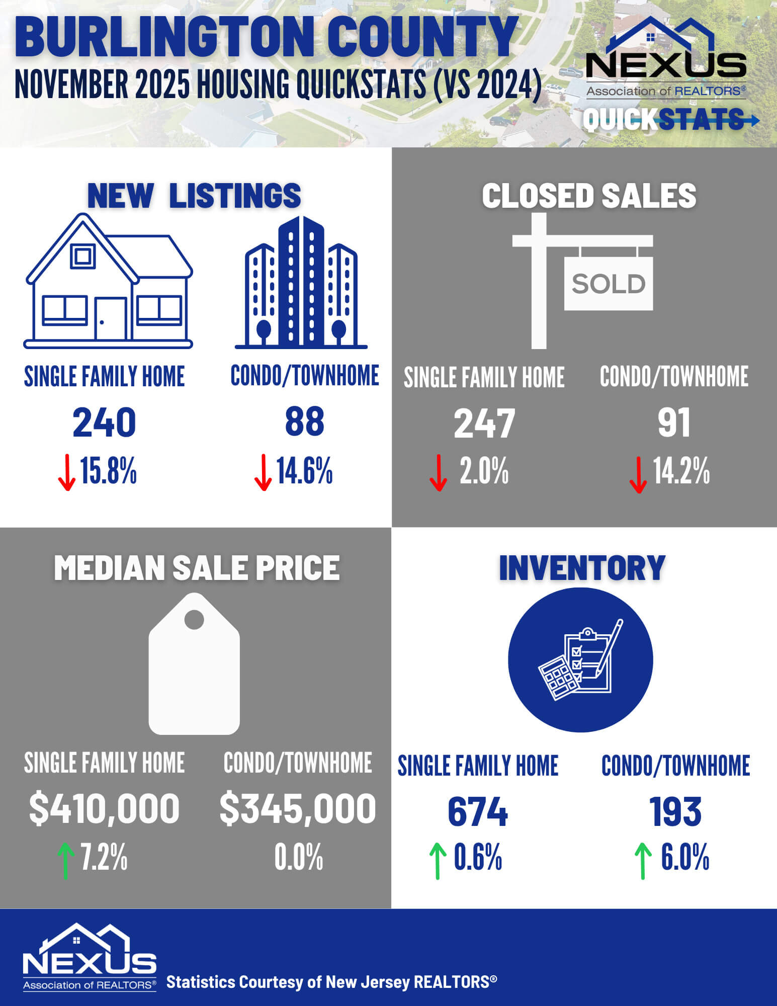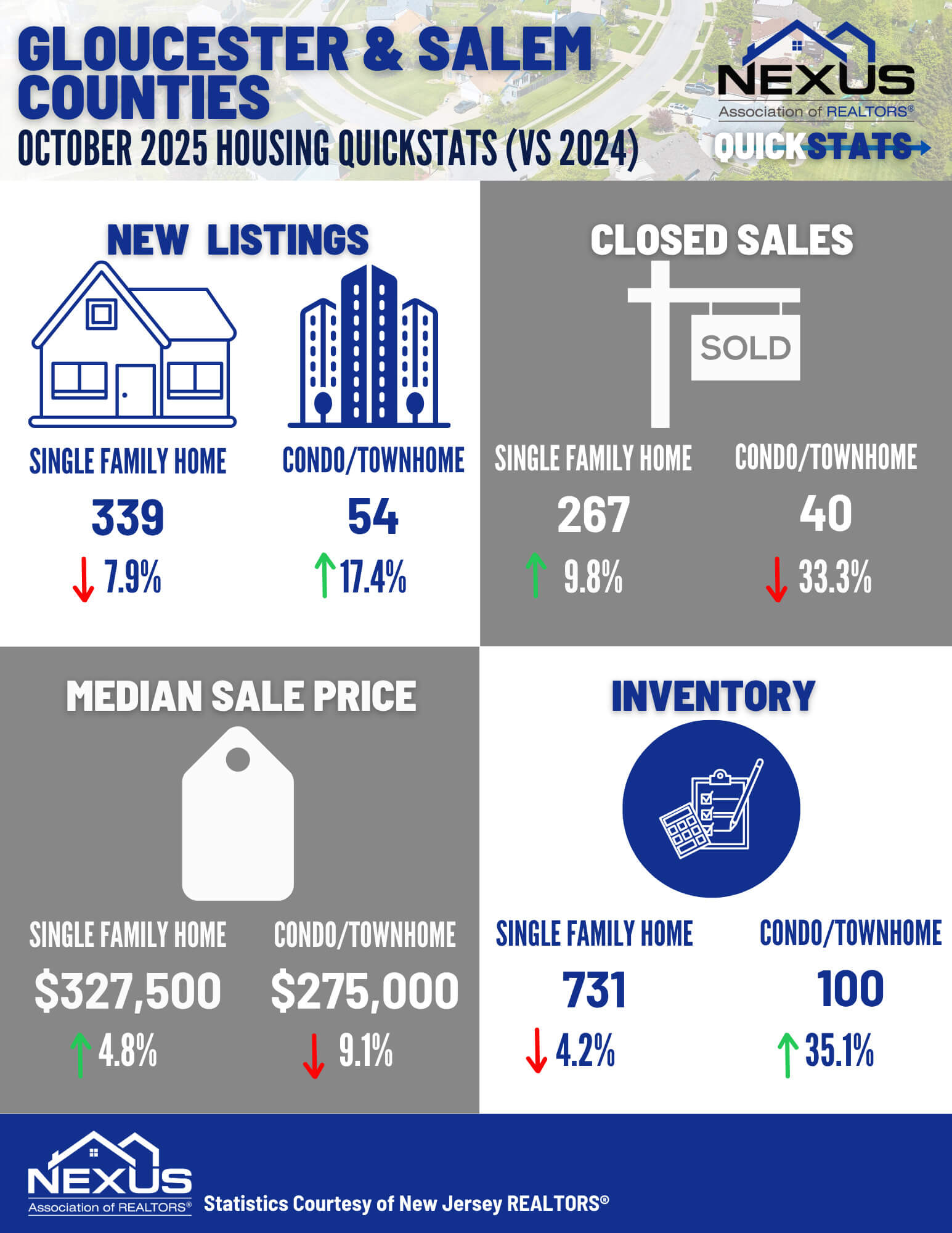 NEXUS is your place for market answers. Be confident when advising clients on what's happening in your local housing market when you have the latest data for 6 adjacent area counties: Burlington, Camden, Gloucester, Monmouth, Ocean, and Salem.